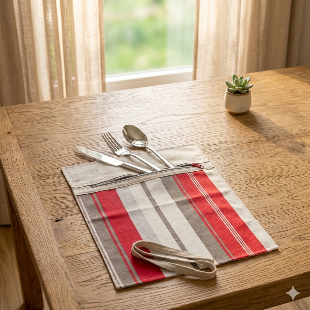 Leve mais charme e funcionalidade ao seu momento à mesa com este lugar americano que vem com bolso para talheres inclusos. Um item prático que deixa tudo no lugar e valoriza a decoração.