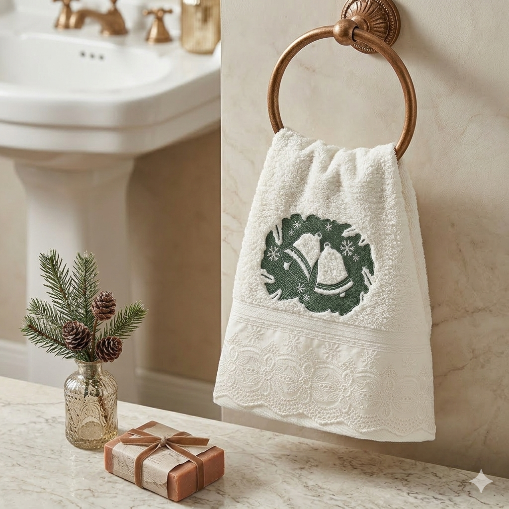 Toalha para lavabo em algodão egípcio com motivo natalino que traz charme e aconchego para seu ambiente.