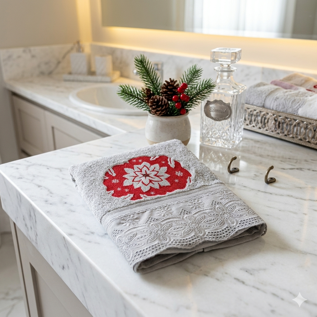 Traga elegância e aconchego com a toalha social de algodão egípcio com motivo natalino, perfeita para decorar sua casa com charme.